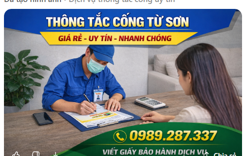 ???? Vì vậy, lựa chọn dịch vụ thông tắc cống Từ Sơn uy tín là điều vô cùng cần thiết.